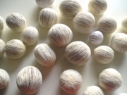 Prayer Beads, 2008, dried fruits bound in embroidery thread resembling white down